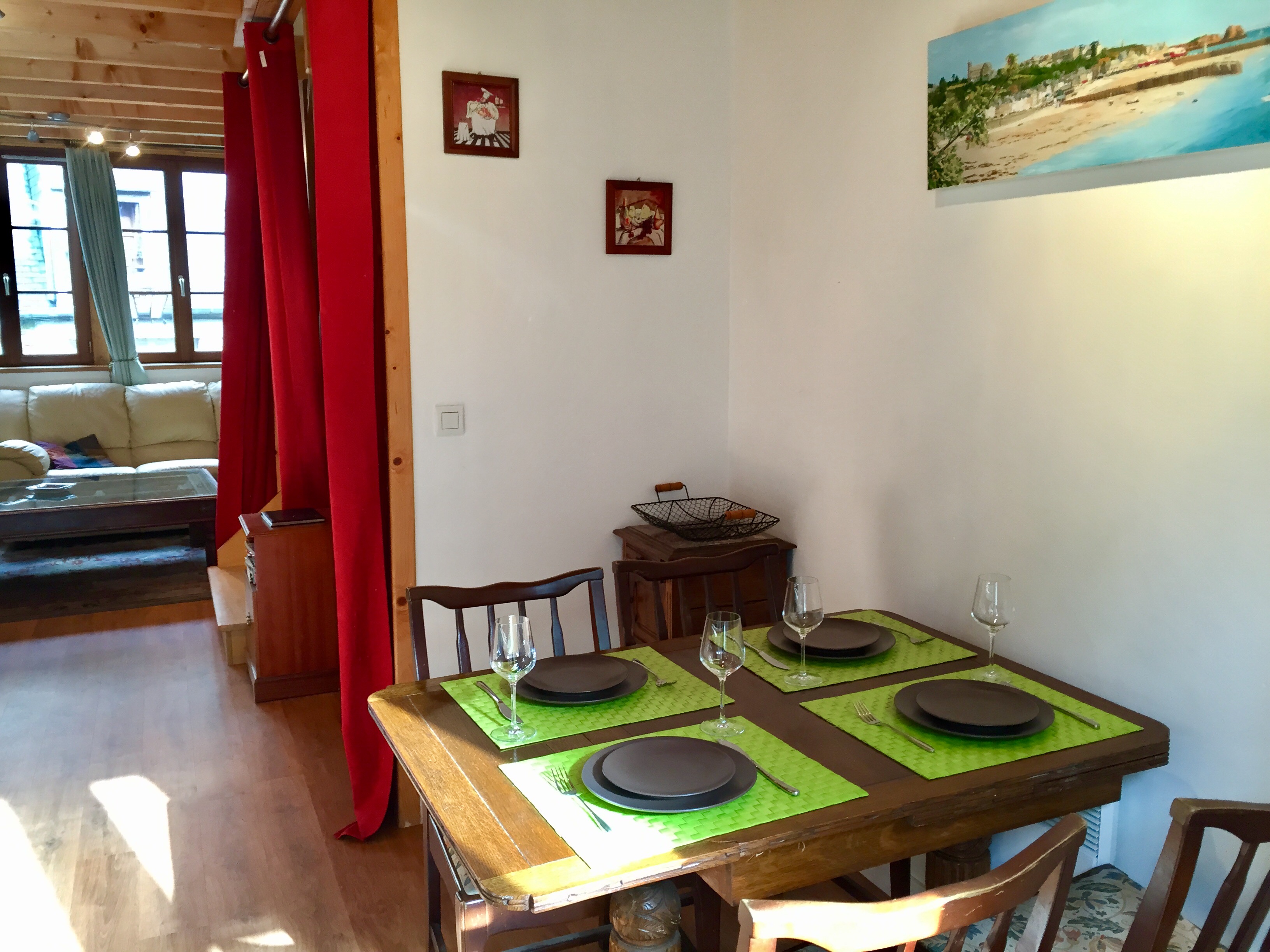 This self catering holiday apartment in Dinan sleeps 4 people. This 2 bedroom gite in Brittany know as Ker Arthur is situated on an enchanting cobbled street near to the port of Dinan, surrounded by traditional breton houses.